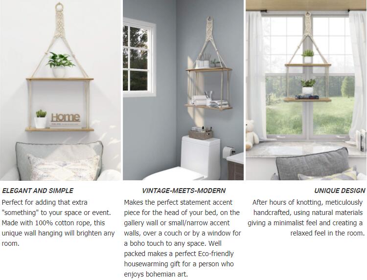 Home » Products » Macrame Decor » Macrame Shelf » Nordic Tapestry Literary Shelf Home Ornaments Bohemian Hand Woven Flower Stand Decorative Wall Ornaments Toy Shelf