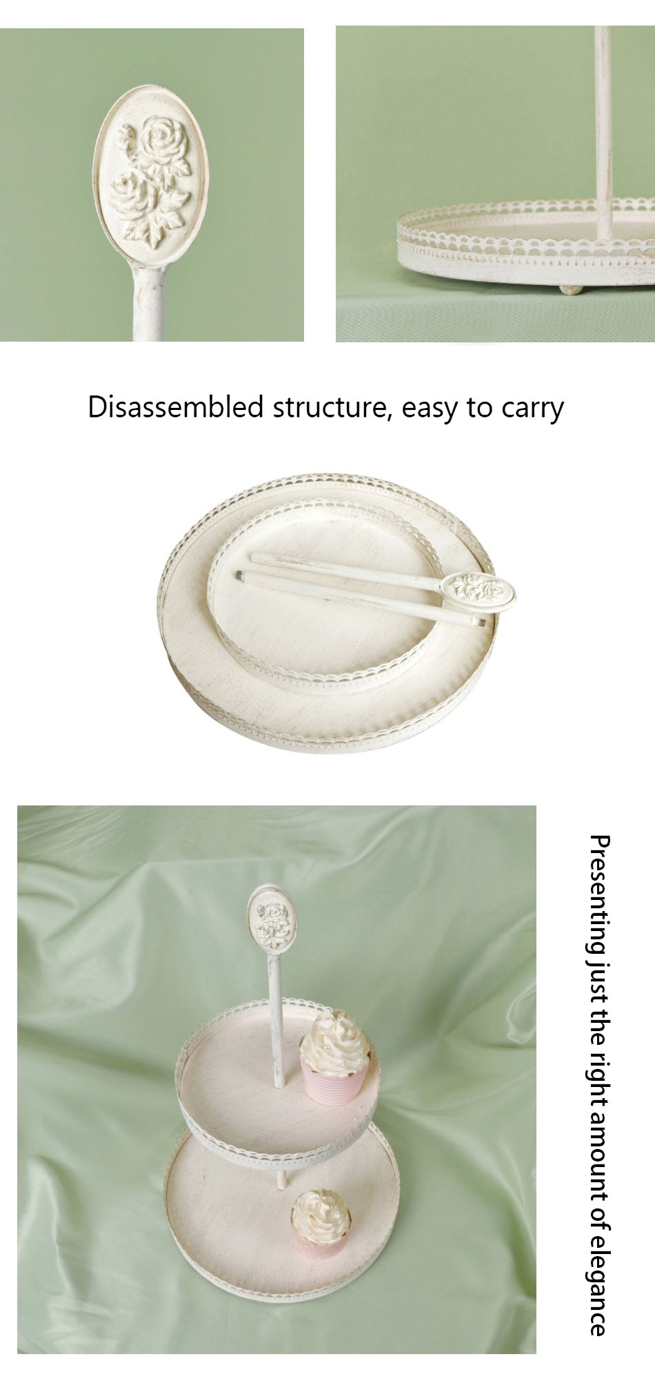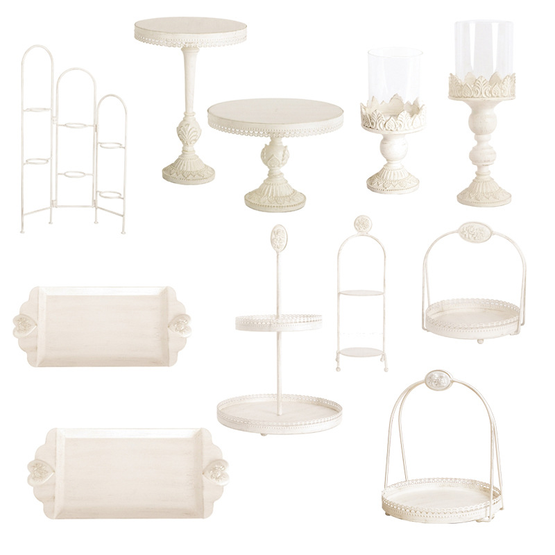 Home » Products » Wedding Decoration » wedding cake stand » Retro White Dessert Table Decoration Wrought Iron Cake Tray Party Display Cake Stand Set Metal
