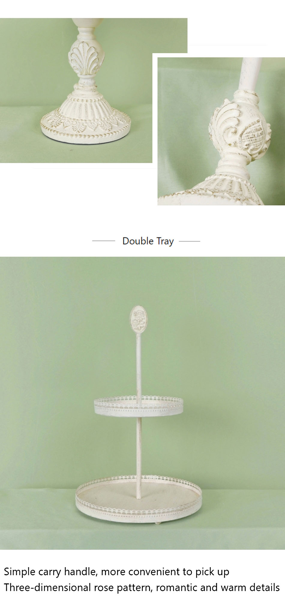 Retro White Dessert Table Decoration Wrought Iron Cake Tray Party Display Cake Stand Set Metal