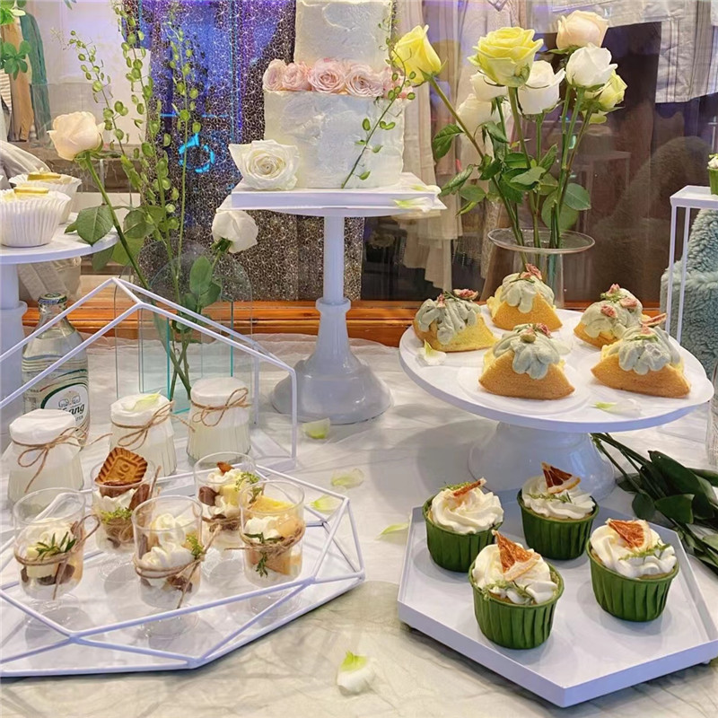 Set Table Tray Display Stand Wrought Iron Decoration Wedding Two Tier Silver Cake Stand Dessert